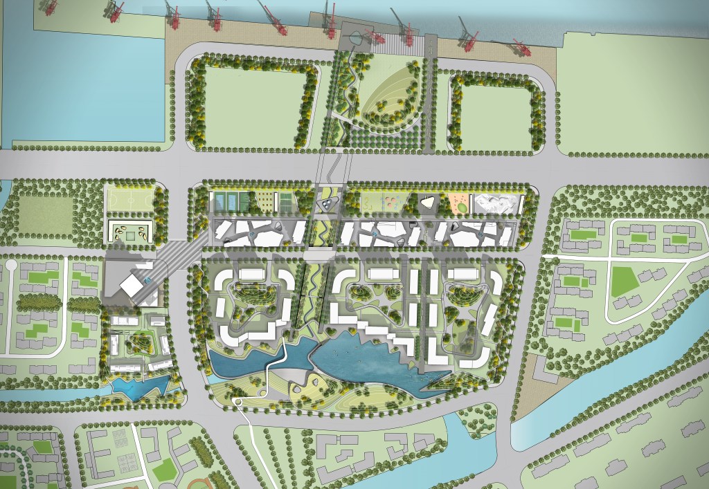 Large-scale mixed-use development of a former waterfront industrial site, consisting of residential, retail, and commercial uses. Continuous urban street walls define exclusive interior courtyard “rooms” – creating private, safe, and intimate outdoor amenity for the residents. A recreational park and pedestrian commercial parcels are sited to the north of the residential development, interwoven with gateway apartment towers that relate to the nautical history of the site.